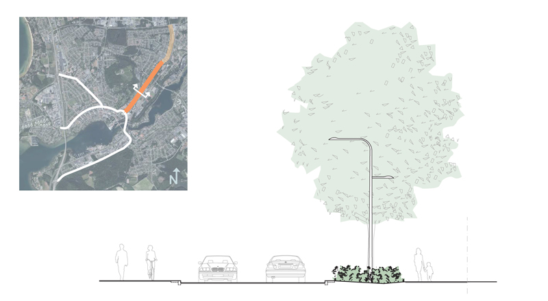 På flera platser längs Östermalmsgatan kommer gröna planteringar samt bättre lösningar för oskyddade trafikanter ordnas. Den del av gatan som är till för fordonstrafik ska smalnas av. Gatan ska få bredare och tydligare gång- och cykelvägar längs hela sträckan.